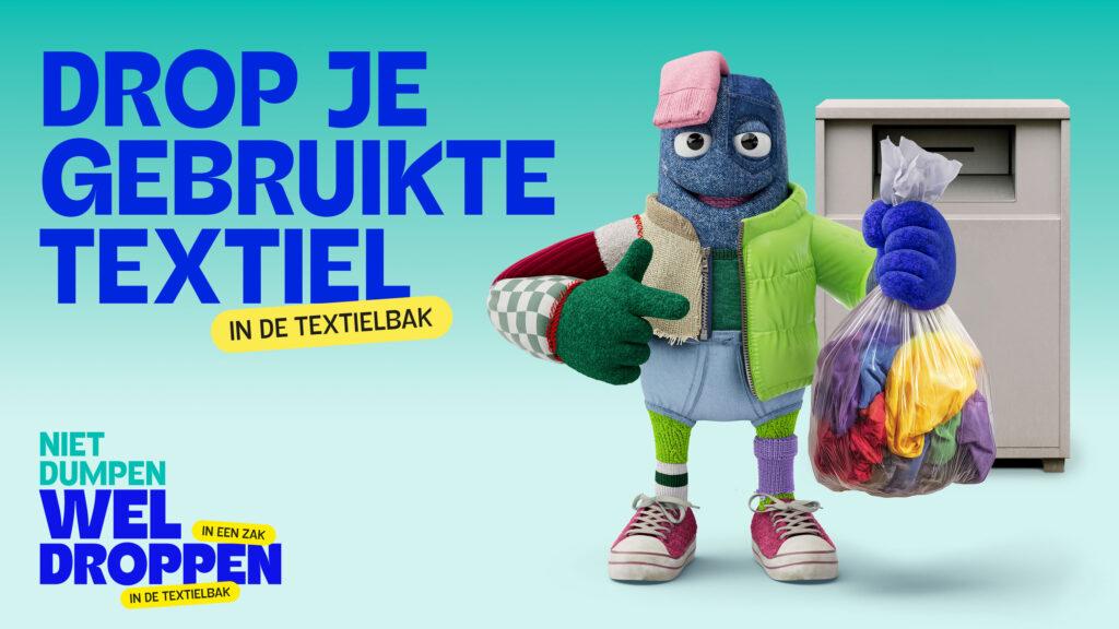 De komende tijd ga je kennismaken met Texxie Textiel, de hoofdpersoon in de campagne Niet dumpen, wel droppen. Texxie laat zien dat álle textiel, ook kapot of versleten, waardevol is en een tweede leven verdient. De eerste stap is makkelijk: niet dumpen, wél droppen – in een dichtgeknoopte zak, bij de textielbakken op straat, de milieustraat, kringloopwinkels en/of op locatie bij onze andere campagnevrienden. Doe je mee?
